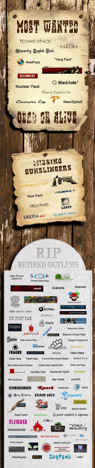 Kahusecurity issued an updated version of their Wild Wild West graphic that will help you learn Who is Who in the world of exploit packs. You can view the full version of their post in the link above.